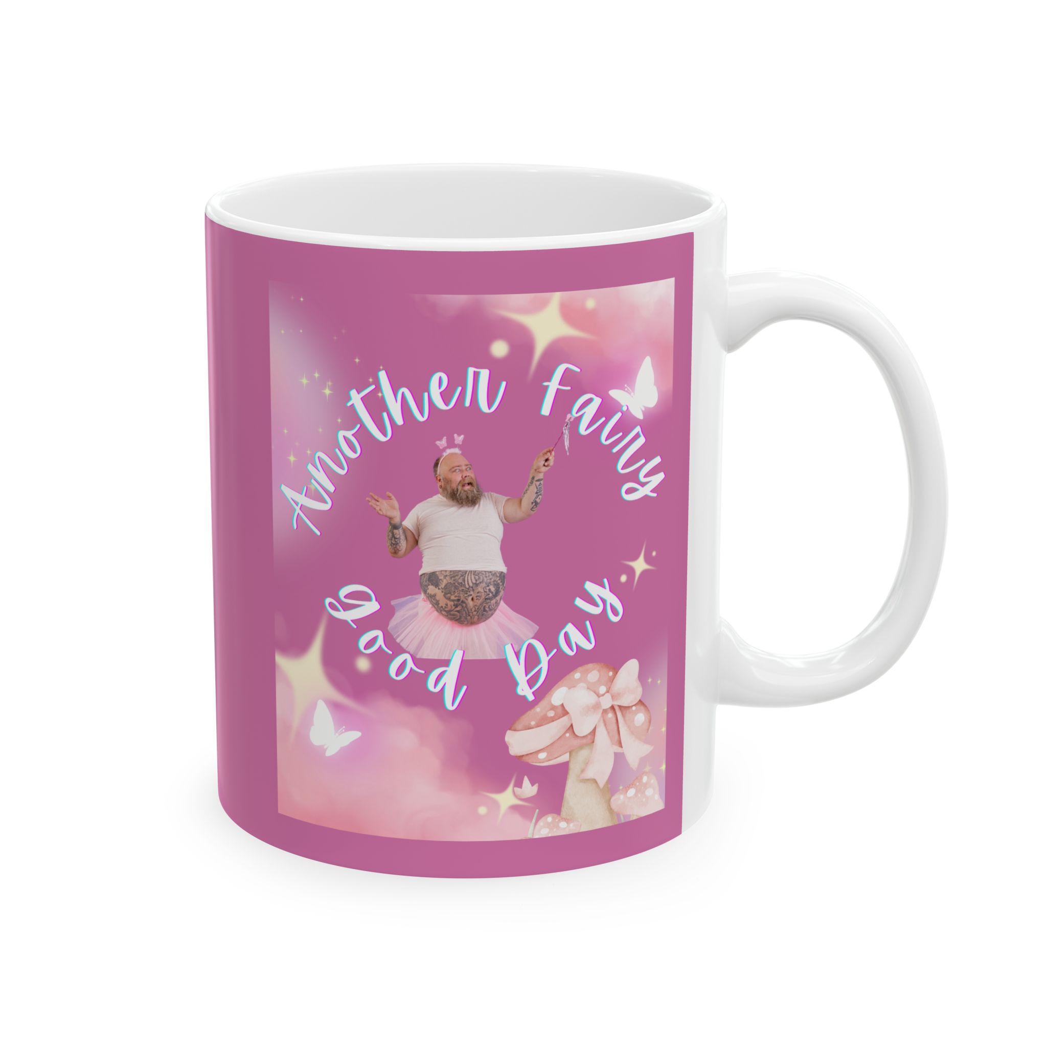 The mug is made from ceramic and has a glossy finish.